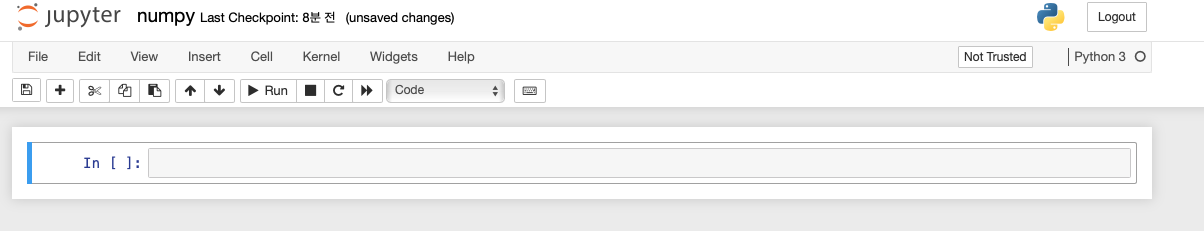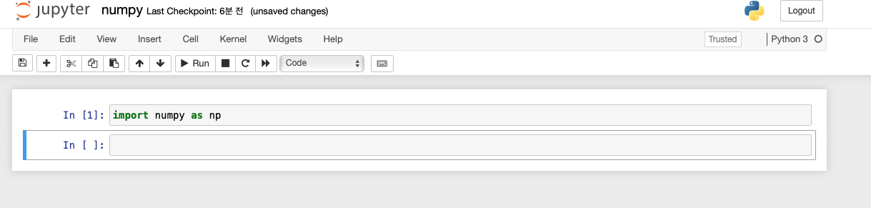 해당 창을 통해서 대화형 형식으로 numpy 테스트를 진행을 합니다.