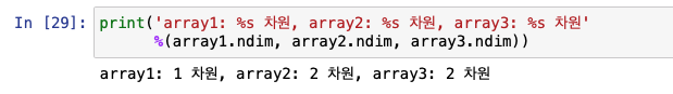 만약 배열의 차원이 이해가 되지 않으면, ndarray.ndim을 이용해서 확인이 가능합니다.