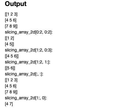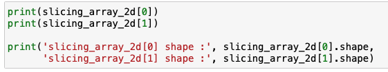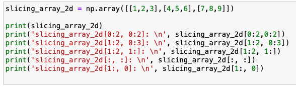 먼저 2차원에 대한 ndarray를 생성 후, 슬라이싱을 이용하여 추출을 합니다.