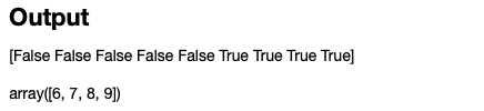 boolean 형태의 1차원 ndarray를 생성 후 이 ndarray를 인덱싱에 사용을 하게되면 True에 맞는 값인 [6,7,8,9]만 반환을 합니다.