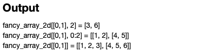 row 값 0~1까지의 값과 col index 값이 2인 값을 반환합니다. 즉 [0, 2] 와 [1, 2] 를 반환하여 [3, 6]이란 값을 반환을 하게 됩니다.