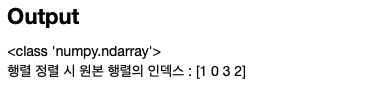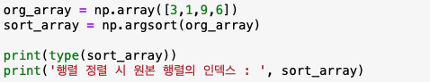 계속 해서 정렬된 행렬을 인덱스로 변환해주는 argsort()에 대해서 설명 드리겠습니다.