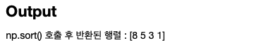 예제를 보면서 자세하게 설명하겠습니다. np.sort()의 경우엔 원본 행렬에 작업없이 진행을 하지만, ndarray.sort()의 경우엔 원본 행렬을 수정을 하였으며, 반환은 None으로 하였습니다.