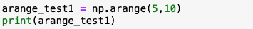 np.arange(5,10)으로 하게 되면, 시작값이 5부터 10-1 까지의 숫자까지 자동으로 생성을 하여, [5~9] 까지의 차원이 생성이 됩니다.