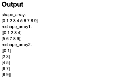 reshape_array1, 2는 row와 col값을 서로 다르게 한 뒤, 결과를 보면 1차원 배열이 2차원 배열로 변경이 되었으며, 각각 입력한 row와 col 값으로 변경된 것을 확인 할 수 있습니다.