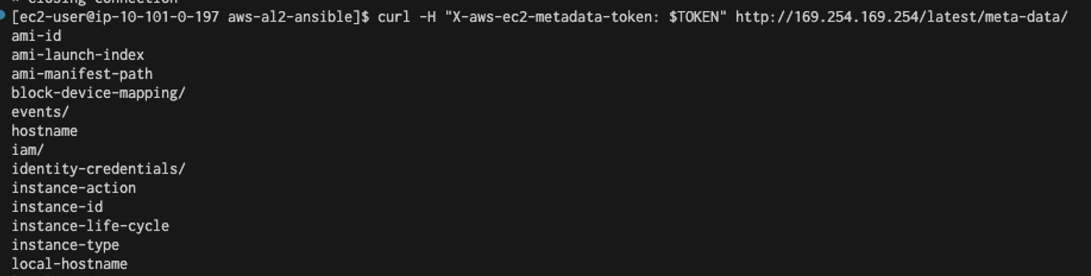 curl -H "X-aws-ec2-metadata-token: $TOKEN" -v http://169.254.169.254/latest/meta-data/